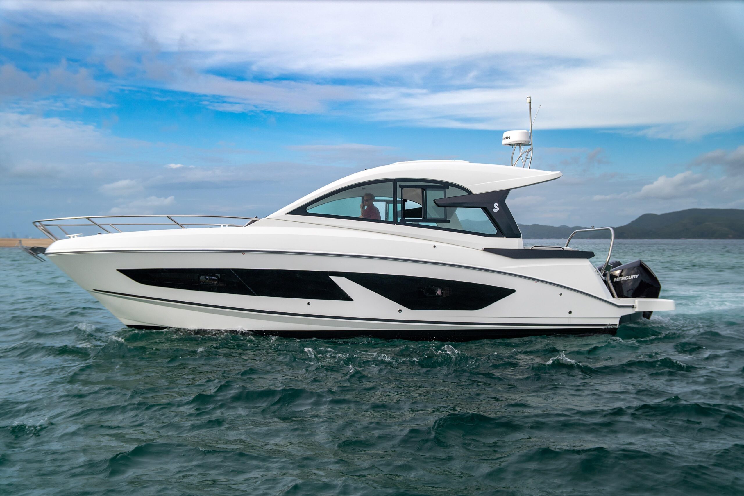 The Gran Turismo 32 is expertly designed to maximize space and versatility, making it ideal for all-season cruising. With an emphasis on natural light and ventilation, its sleek, modern profile enhances both style and comfort. The well-arranged upper deck ensures seamless interaction between spaces, while generous headroom provides an open and airy feel. For added flexibility, the large windscreen can be closed, and the roof can be opened or shut, allowing for a truly adaptable boating experience.