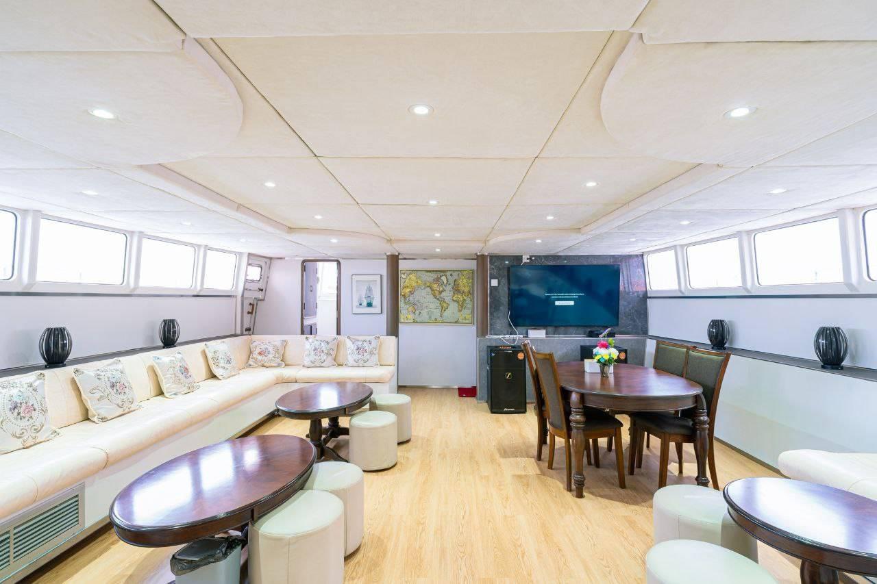 Featuring 8 spacious guest cabins—each with en-suite facilities—plus 9 heads in total, she can comfortably accommodate large groups while maintaining an intimate and private atmosphere. The wide beam provides excellent deck space for relaxation, dining, and dive preparation, with ample storage for gear and equipment.